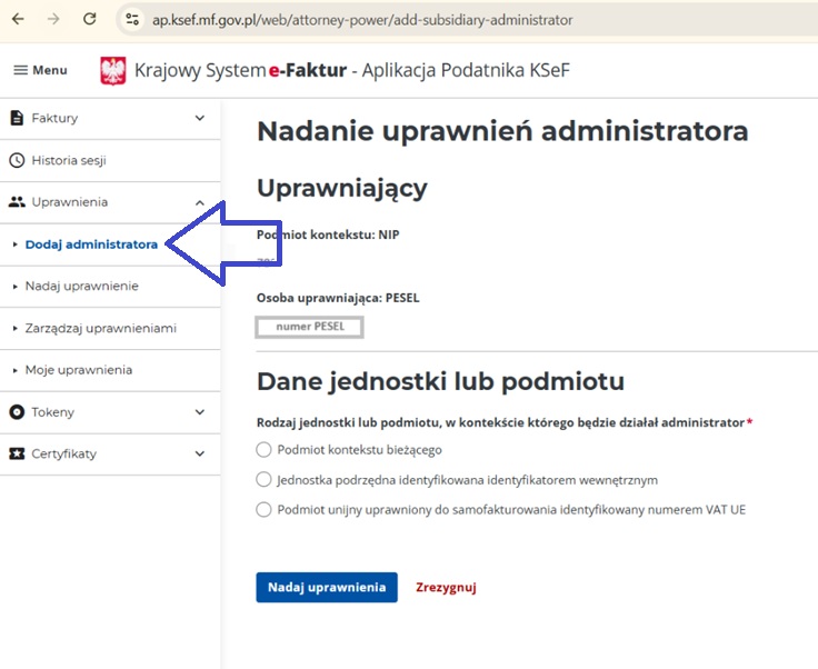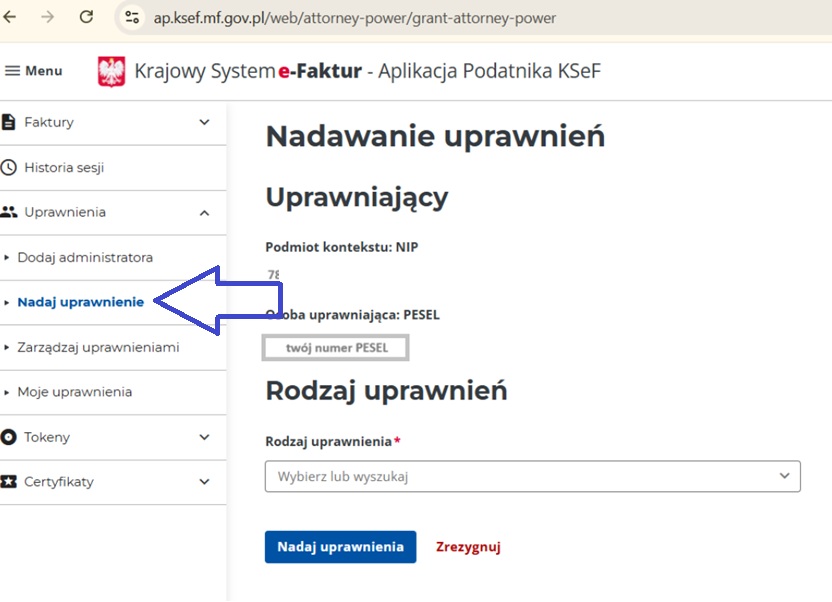 Chcąc uzyskać pomoc w zakresie nadawania w KSeF odpowiednich uprawnień, należy skontaktować się z Krajową Informacją Skarbową.