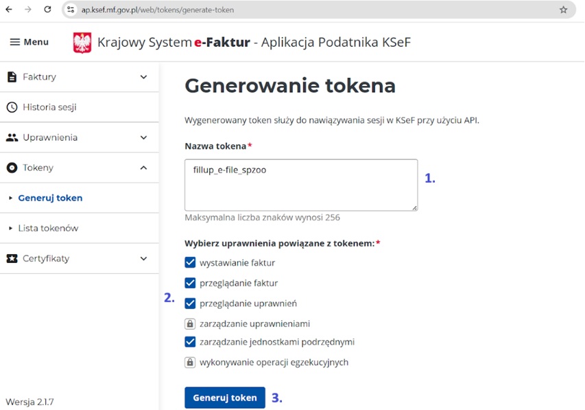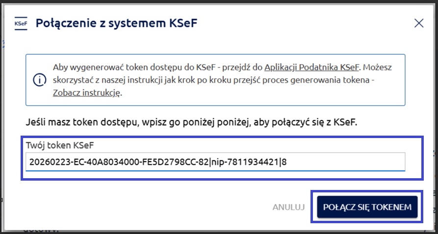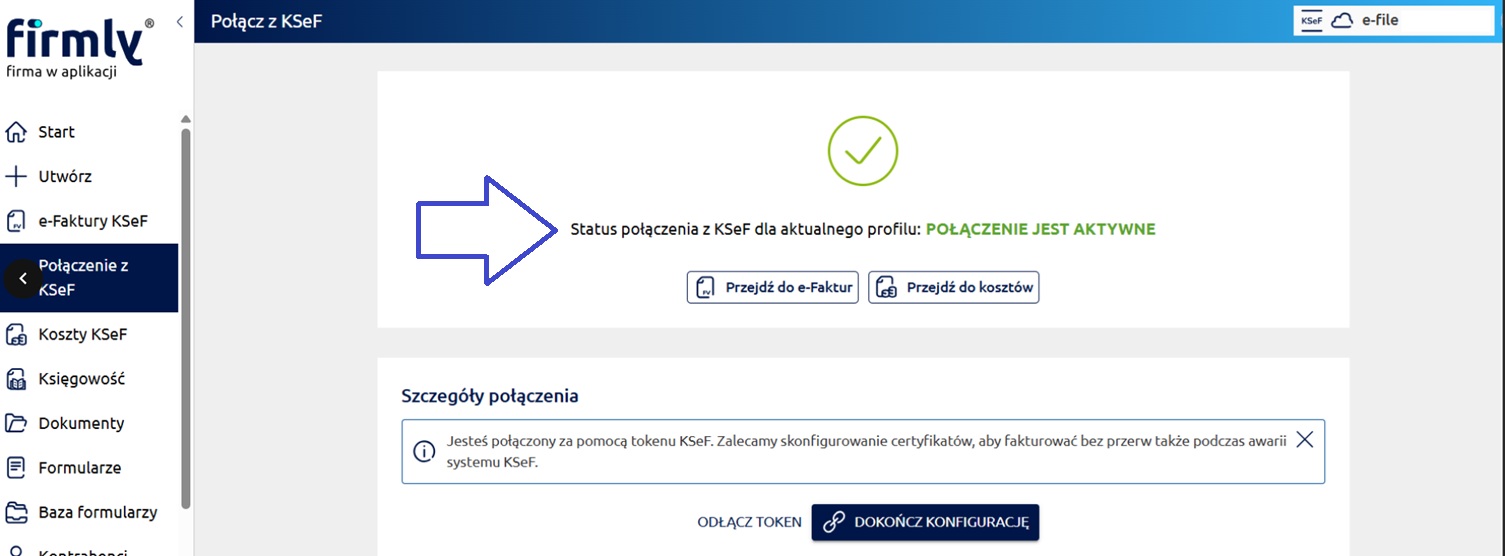 Tak wygenerowany i zapisany token może być wykorzystany do połączenia z KSeF w aplikacji firmly.