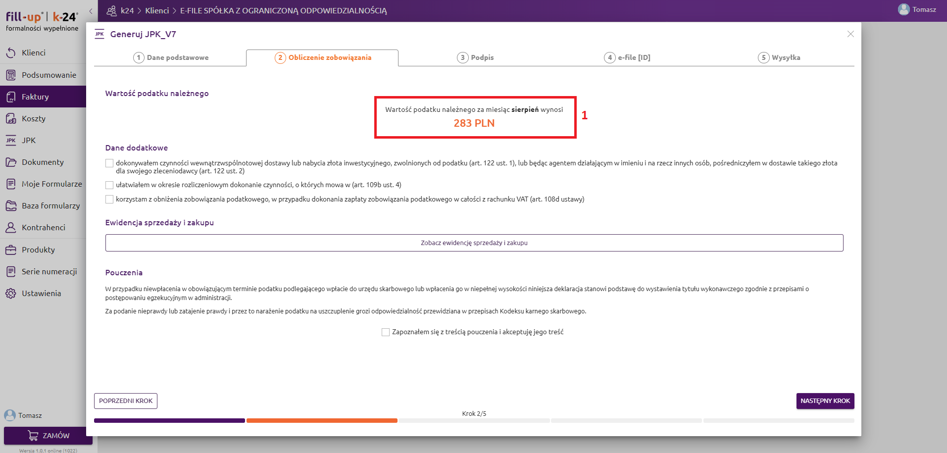 Krok 2. – Obliczenie zobowiązania - JPK_V7