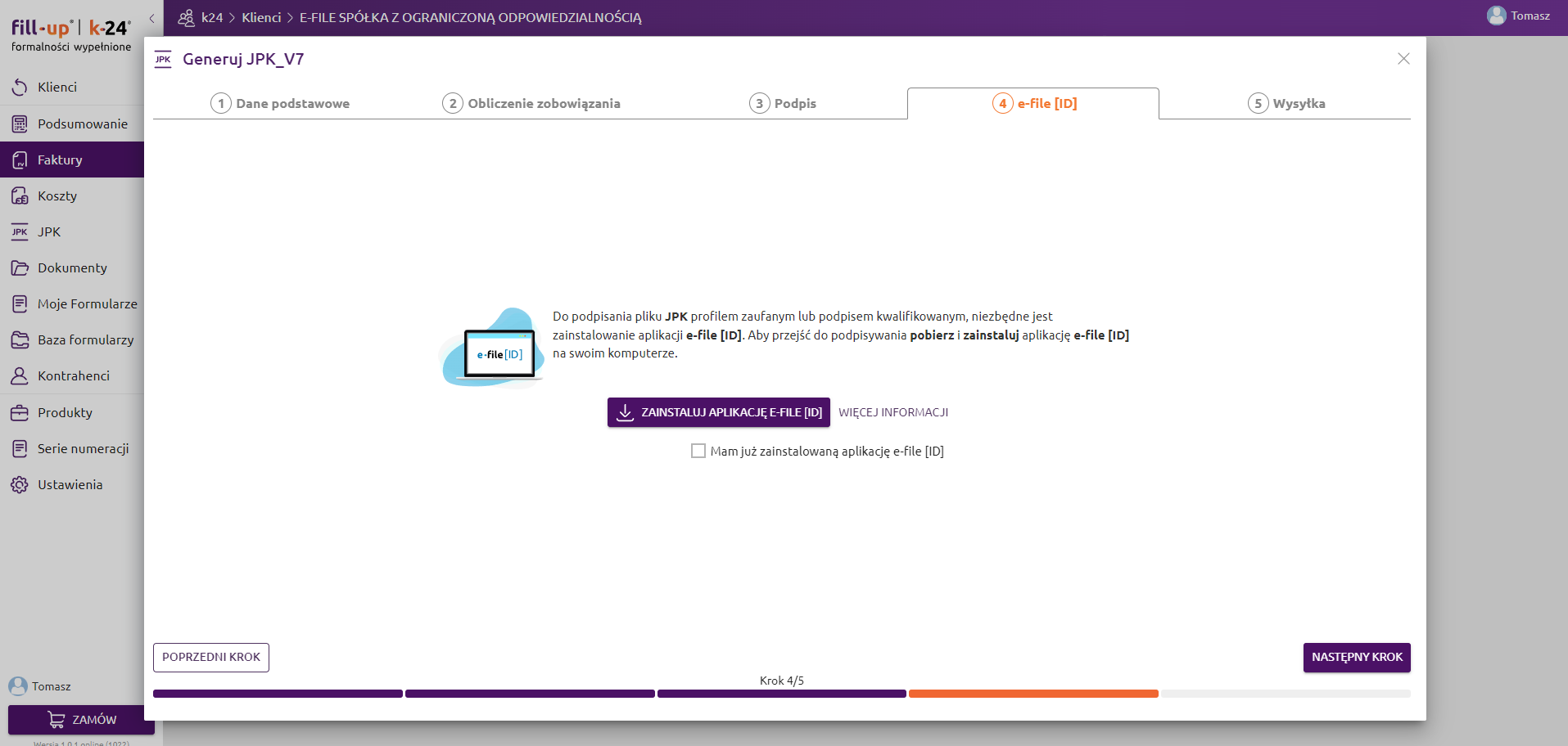 E-file [ID] to aplikacja, która umożliwia podpis deklaracji za pomocą Profilu Zaufanego e-PUAP i podpisu kwalifikowanego. Jest niezbędna przy podpisie dokumentu w aplikacji fillup e-faktury online.