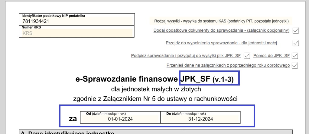 Poniżej pokażemy jak wygląda wypełnianie testowego sprawozdania i testowa wysyłka do KAS.