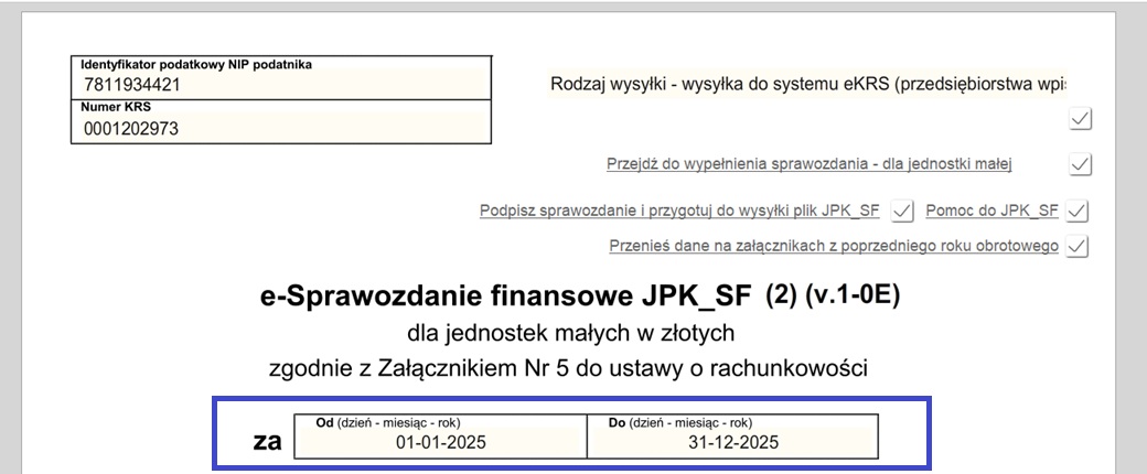 Wpisz okres, za jaki przygotowujesz sprawozdanie.