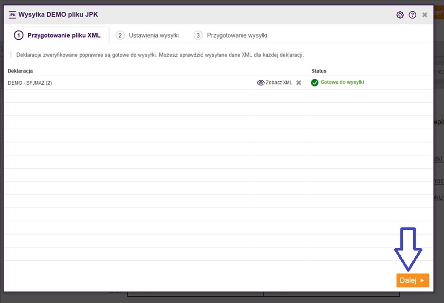 Po poprawnym przetworzeniu pliku xml, przejdź ‘Dalej’.