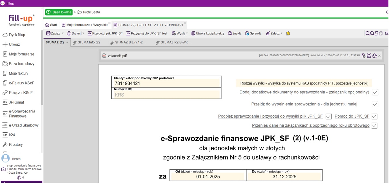 Jeśli posiadamy sprawozdanie finansowe za rok 2025 wypełnione na wersji (1-3) można je w programie fillup przekonwertować do wersji (2). Sprawdź jak można dokonać konwersji w dziale >> ' Konwersja sprawozdania z wersji (1-3) na wariant (2)'.
