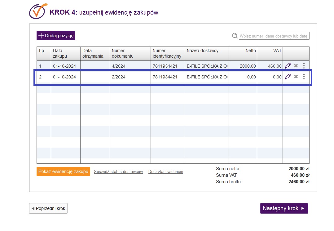 Możemy również dodać kolejną pozycję klikając “Dodaj towar/usługę”.