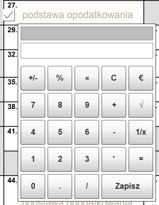 Symulacja kwot dostępna jest z poziomu otwartego formularza w menu Zapisz->Zapisz symulację kwot i pozwala na zapis aktualnie wpisanych kwot na formularzu, a po zmianie tych kwot będą widoczne różnice po najechaniu na pole kwoty. Jest to przydatne np. przy wyliczaniu różnych wariantów podatków albo do porównania różnic z poprzednim rokiem.