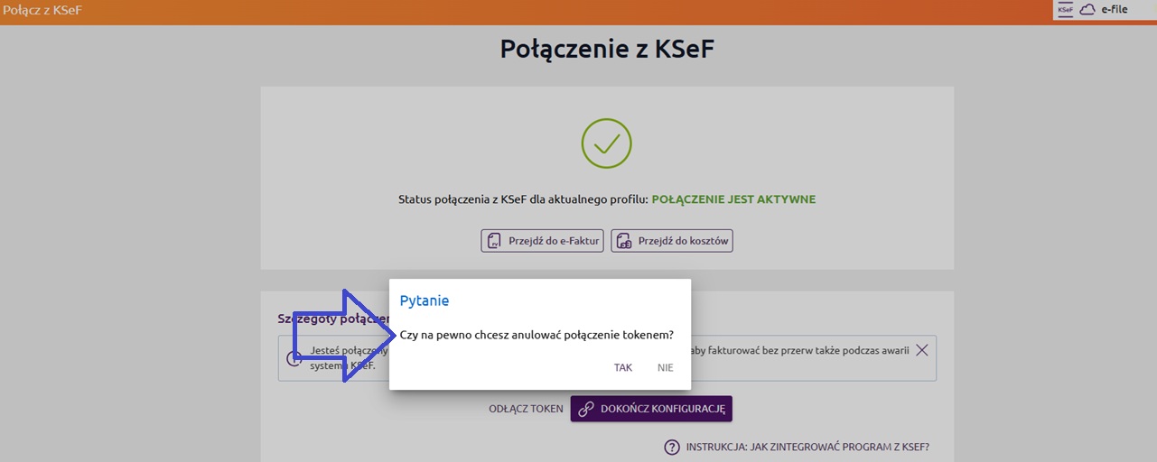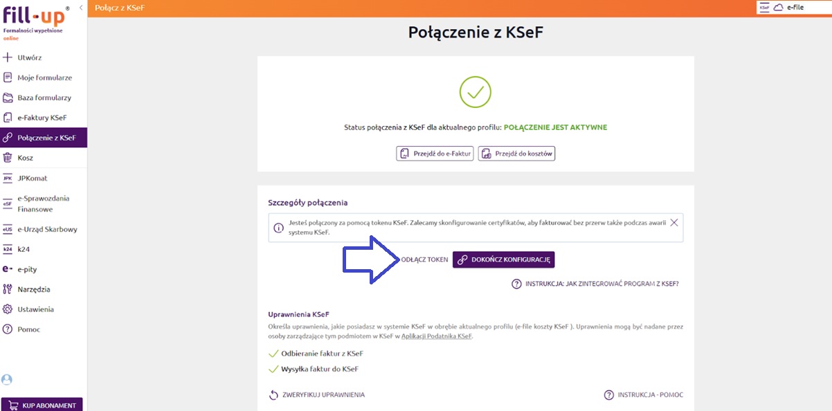 Uwaga: Odłączony token KSeF zostanie usunięty tylko z programu fillup. W celu dezaktywacji tokena, należy zalogować się w systemie KSeF i unieważnić token.