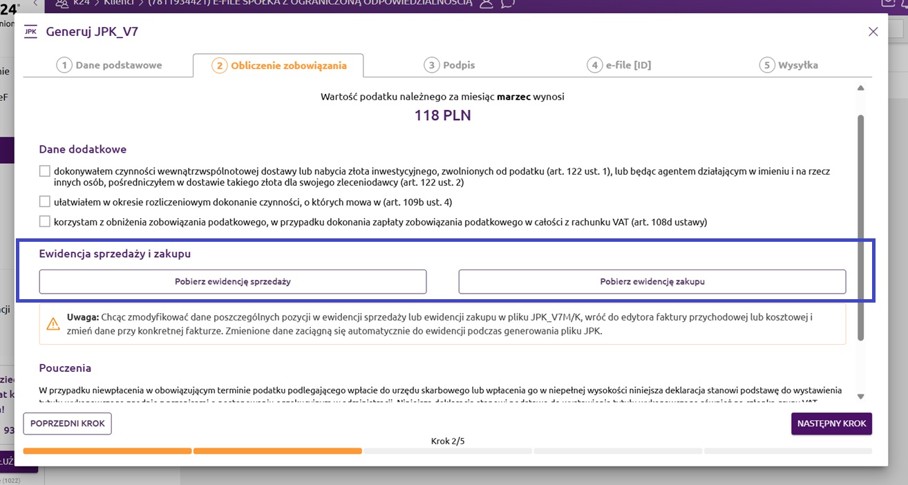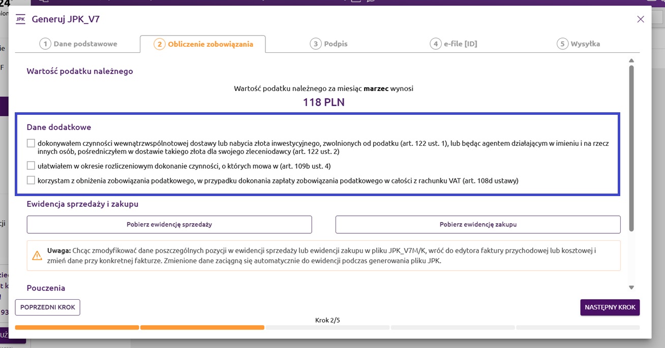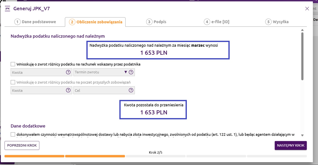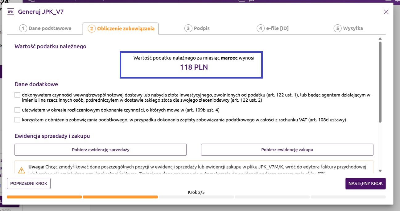 Krok 2. Obliczenie zobowiązania - JPK_V7