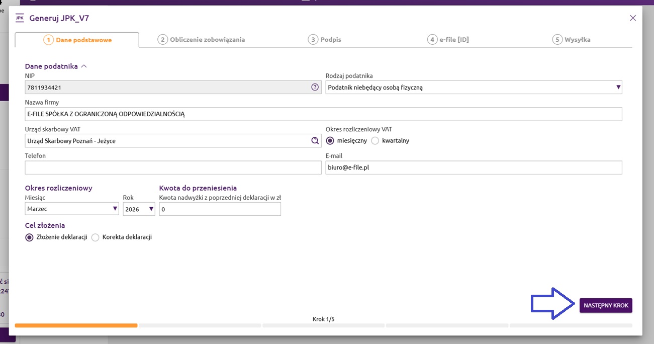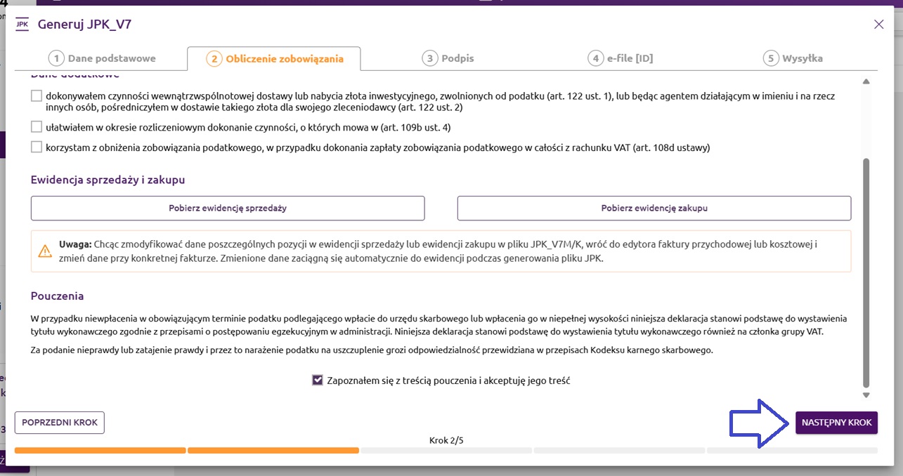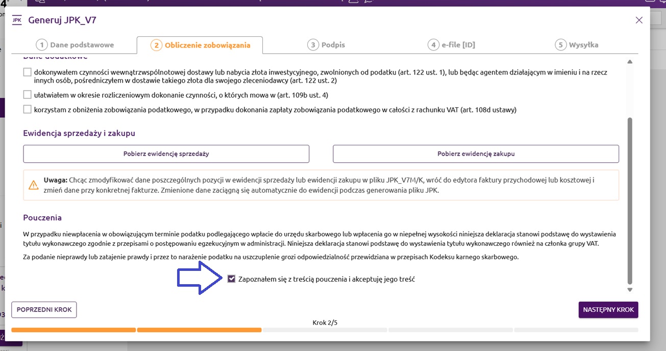 Krok 2. Obliczenie zobowiązania - JPK_V7