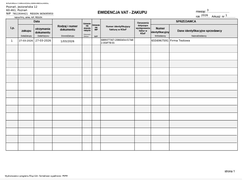 Poniżej możemy pobrać ewidencję sprzedaży oraz zakupu.